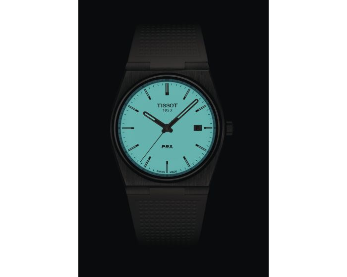 And in the Red Corner, we have the Tissot PRX 40 mm Quartz.. this style is known as a sports watch. this always confuses me as i would describe it as a dress watch .. some may disagree but what we can settle on is how damn good this watch is for the little money it is. .. this model as shown is only £335. it is 40mm in diameter and has a 70’s style integrated strap that is quick-release. This quartz model is not available on a bracelet but can be retrofitted. i think the watch looks superb on the very comfy white rubber strap.