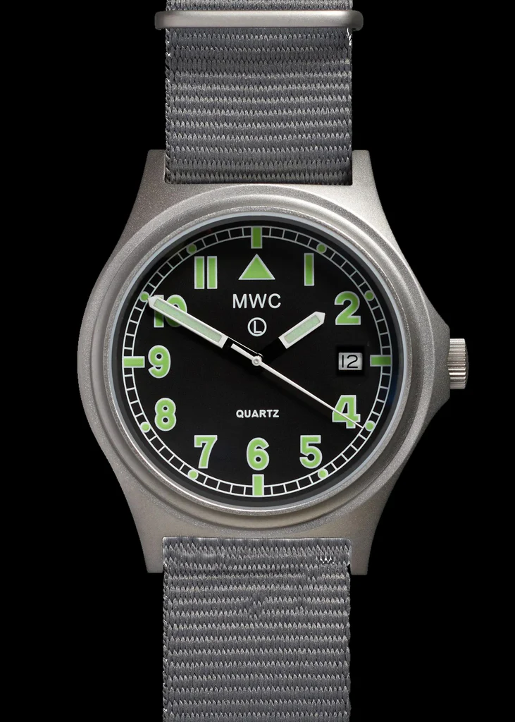 MWC (The Military Watch Company)  was founded in 1974 by Wolfgang Obrigheimer, although he manufactured a limited number of watches in the mid-1960s and branded the movement” Military Watch Company” it was not until 1974 following a conversation with another famous watchmaker Albert Wajs of Ollech and Wajs who also lived in Zürich that he decided to run the business full time. They have spread the narrative of supplying the armed forces for years but, without any substantial evidence were generally mocked by the watch community. There is a certain well-respected military watch forum who have an automatic block set up for people who mention this particular company. The original G10 has a plexi crystal is only 50m water-resistant, and has a none screw down crown. the battery is accessible via a small hatch. The new MWC G10 has 100m / 330ft water resistance and for this specific updated model, it has been allocated the NATO Stock number NSN: 6645-99-472-3228 by the Ministry of Defense codification agency making this currently the most up-to-date approved specification.