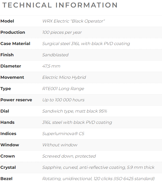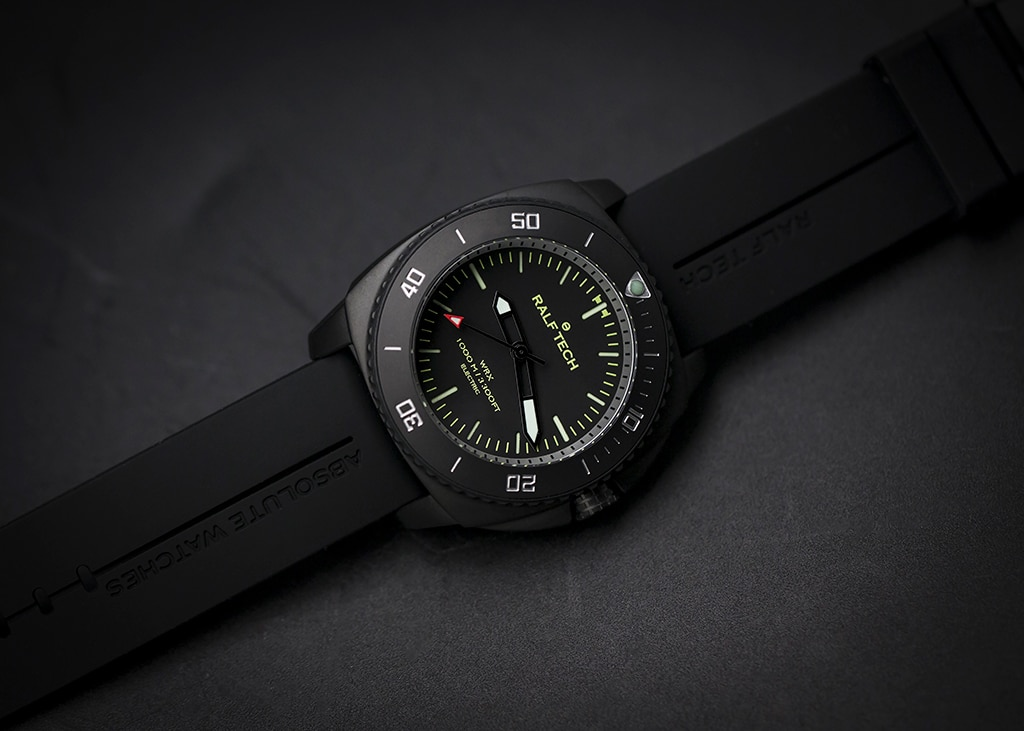 I like to think I keep on top of watches that has been issued but occasionally one slips through the net.The Ralf -Tech WRX Black Operator is one such watch. Frank Huyghe created the company in 1996 to create a watch used for “Technical Diving “which is deeper than recreational diving and requires specific equipment. The subject of this article,The WRX Electric Black Operator (Black O) is the latest version of the WRX used by French Special Forces. The Ralf Tech ‘Black Operator’ was first designed and delivered in the fall of 2020 to two special forces units and a nuclear submarine launcher crew. The reference to “Operator” in its name is the term that designates men in contact with the enemy in external theatres of operations. Now here is the civilian version. Based on the WRX Electric Black, the Operator (“O”) version is characterized by its increased water resistance, its simplified dial, and its matte black ceramic bezel. The black is for added stealth. This watch is limited to 100 pieces per year and currently costs 2400 euro.